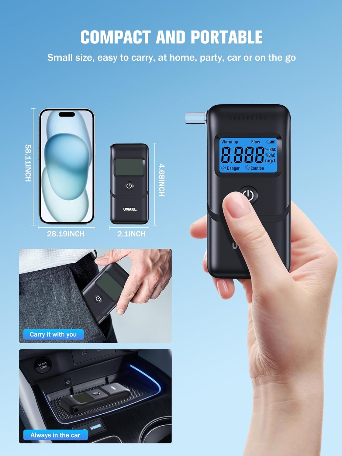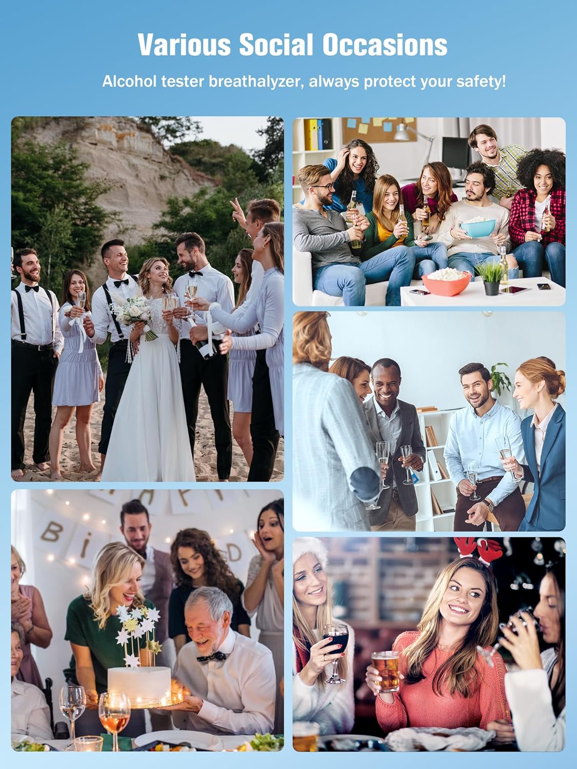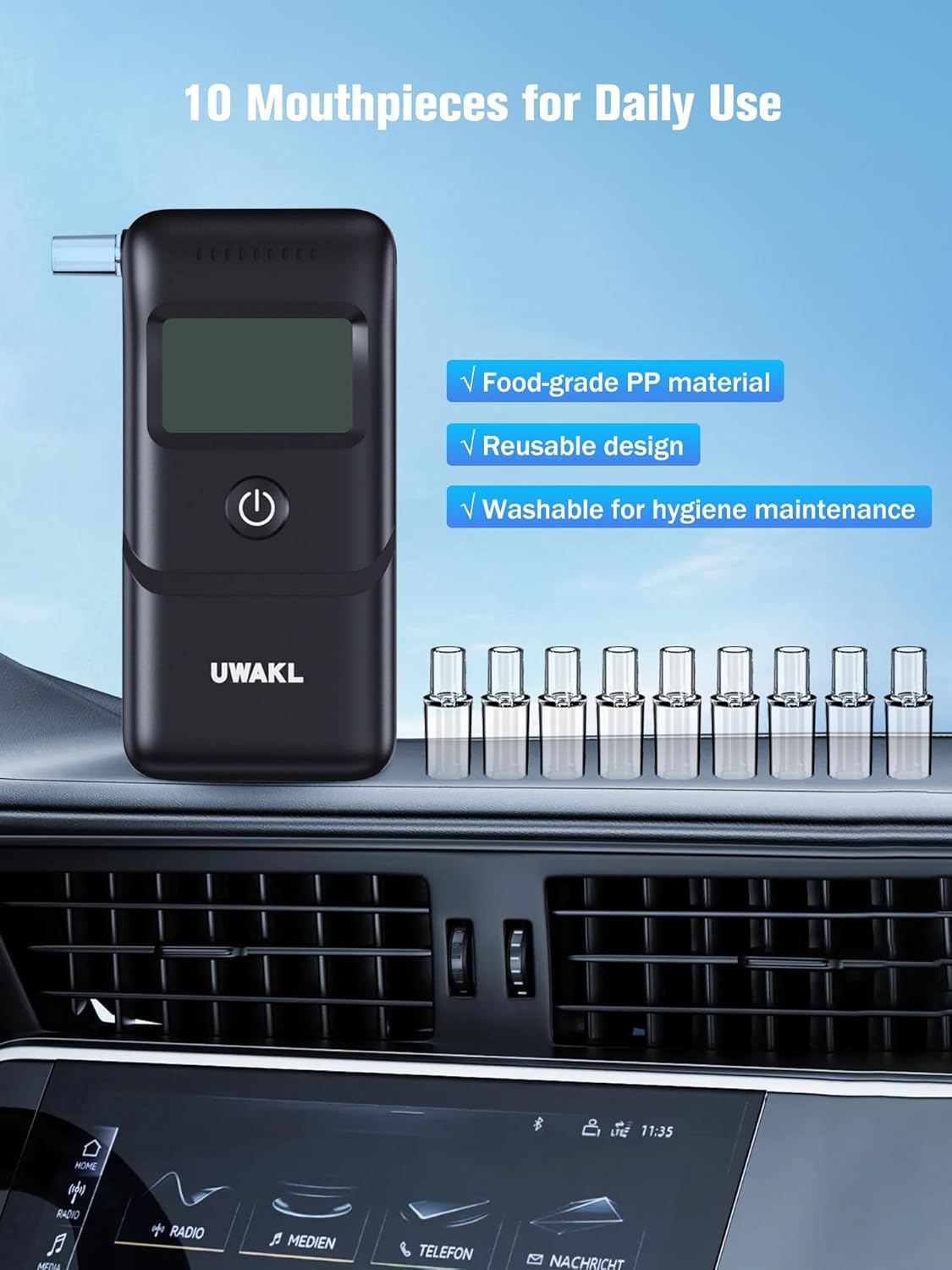 Hygienic Mouthpieces & Versatile Use: This alcohol breath tester Includes 10 reusable and washable mouthpieces, allowing for hygienic sharing with friends or family. Perfect for personal use, family gatherings, parties, and social events. A thoughtful and practical gift for men, fathers, drivers, and friends who value safety and responsibility. Note: Wait 20 minutes after drink before using the Portable Alcohol Tester. Perform 3 consecutive tests and take the average to ensure accuracy